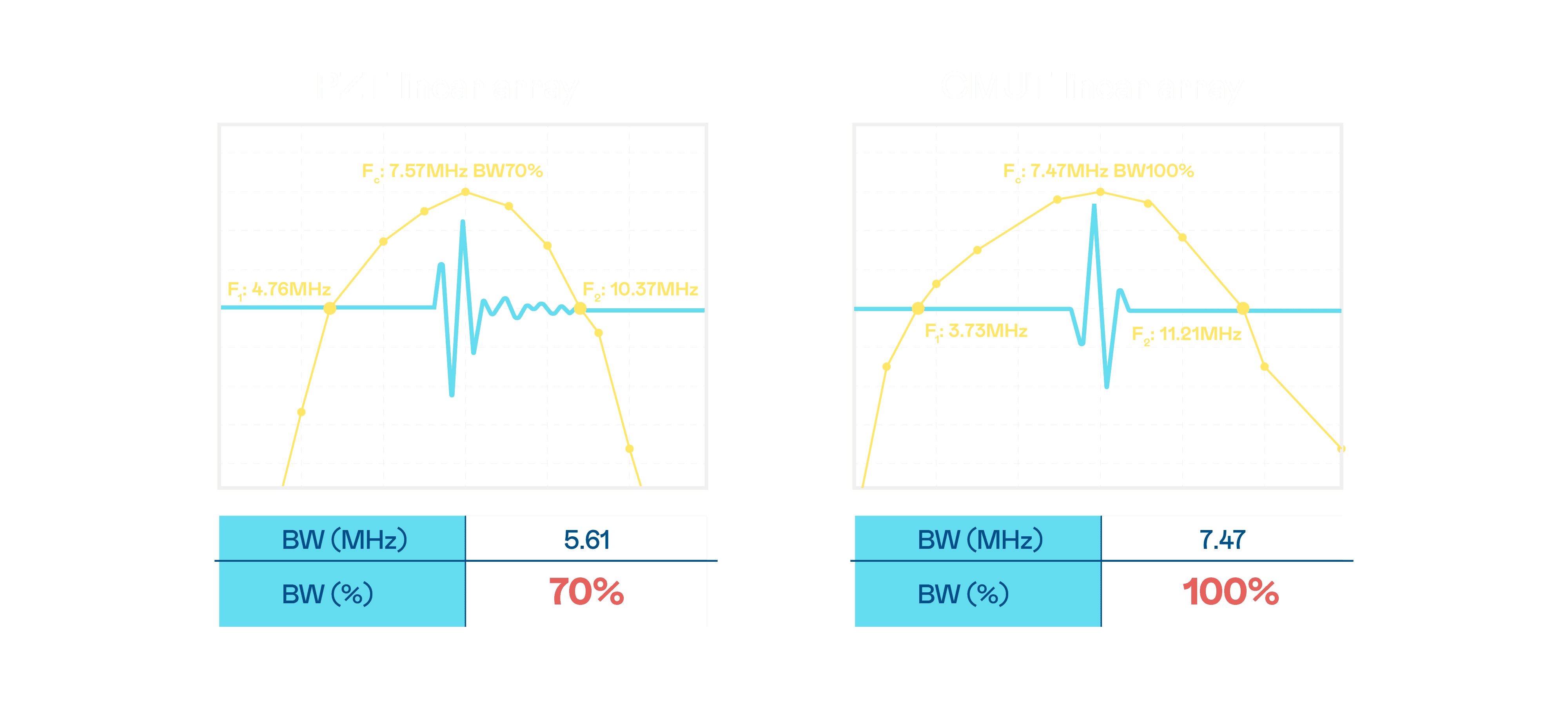 CMUT 技术是一种用电容式微机电元件来产生超音波讯号的技术。。。。与传统 PZT 压电式技术相比,,,CMUT 频宽增加 30%,,,,更宽频的超音波讯号让影像解析度大幅提升,,,是实现高影像品质医疗超音波扫描、、、促进精准医疗发展的关键技术。。